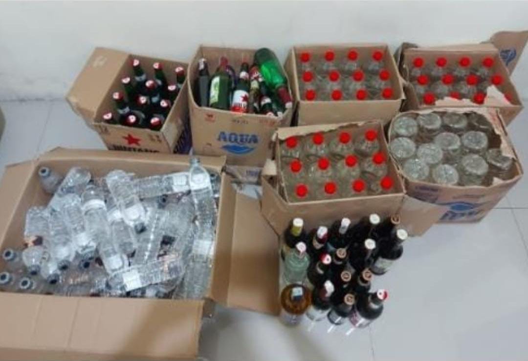 Selanjutnya, petugas ke tempat SW dan melakukan penggeledahan. Hasilnya, ditemukan ratusan botol minuman beralkohol tanpa izin edar yang disimpan di dalam kardus.