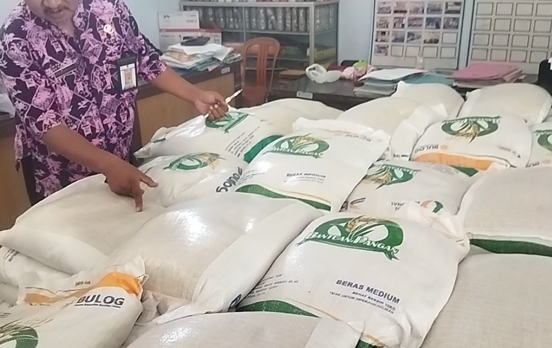 “Total ada 1.256 kantong beras. Ntah bagaimana tapi dari pihak kami sudah menyampaikan kondisi ini ke kecamatan,” ujarnya.