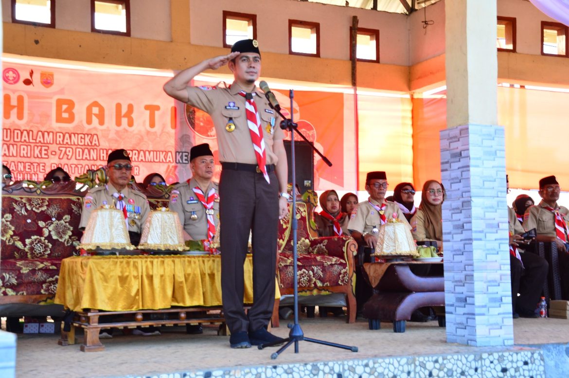 Andi Muhammad Iqbal Walinono, selaku Ketua Mabiran Kecamatan Tanete Riattang Timur, dalam sambutannya menyebutkan bahwa terselenggaranya pelaksanaan kegiatan Kemah Bakti di Tanete Riattang Timur ini, berkhat kerja keras para Mabigus serta Pembina Gugus depan yang senantiasa menugaskan adik Pramuka untuk melaksanakan Kema Bakti 2024.