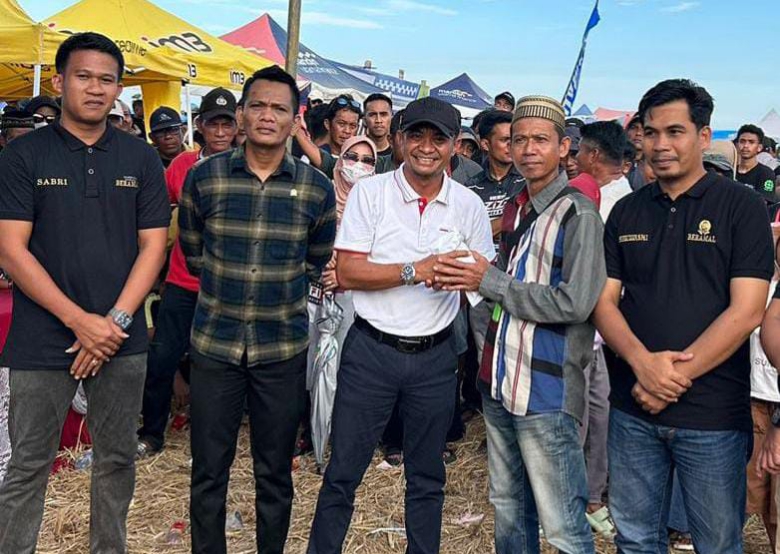 BONE, BB — Hadiri acara balap motor di Desa Iterung, Kecamatan Tellu Siattingnge, Kabupaten Bone, calon Bupati Bone, H.Andi Asman Sulaiman, yang didampingi oleh anggota DPRD Bone, Andi Muh Salam (Lilo Ak) mendapat sambutan yang sangat meriah oleh warga.