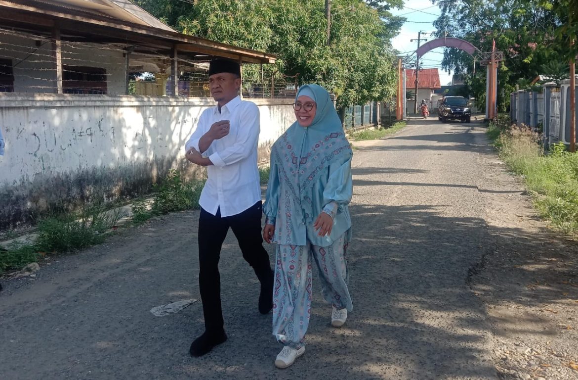 Andi Asman bersama istrinya berjalan santai menuju ke TPS dengan hati yang penuh kegembiraan.