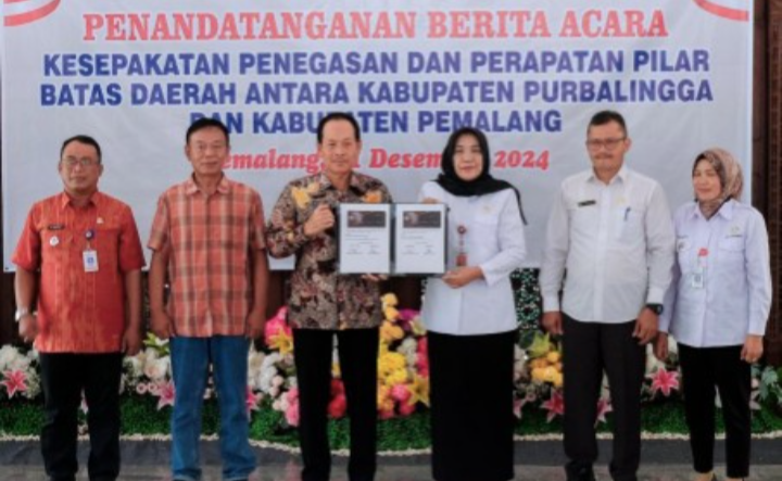 PEMALANG,BB– Penegasan batas daerah yang sangat strategis dalam rangka memperkuat hubungan antar daerah dan memberikan kejelasan serta kepastian hukum terhadap batas wilayah, Pemerintah Kabupaten Pemalang dan Pemerintah Kabupaten Purbalingga hari ini melakukan penandatanganan berita acara Kesepakatan Penegasan Batas Daerah dan Perapatan Pilar Batas Daerah, di Pendopo Pemalang, Rabu (11/12/2024).