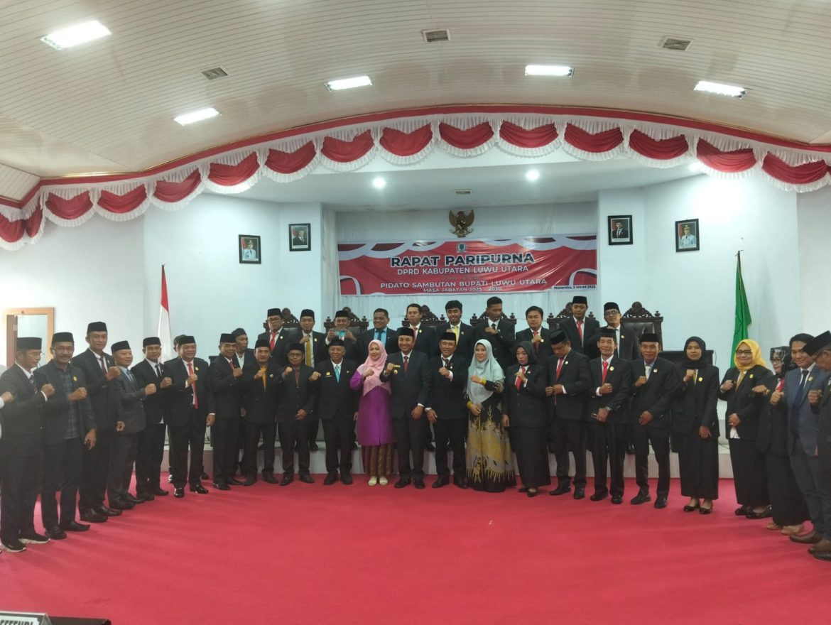 BERITABERSATU.COM, LUWU UTARA — DPRD Luwu Utara menggelar serah terima jabatan (sertijab) Bupati dan Wakil Bupati Luwu Utara Periode 2025-2030, Paripurna Pidato Sambutan Bupati Luwu Utara, di Ruang Sidang Paripurna DPRD Luwu Utara, Rabu (5/3/2025).