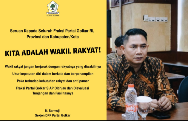 “Seruan kepada seluruh fraksi Partai Golkar RI, Provinsi dan Kabupaten/Kota, kita adalah wakil rakyat,” begitu maklumat Partai Golkar yang disampaikan M. Sarmuji.