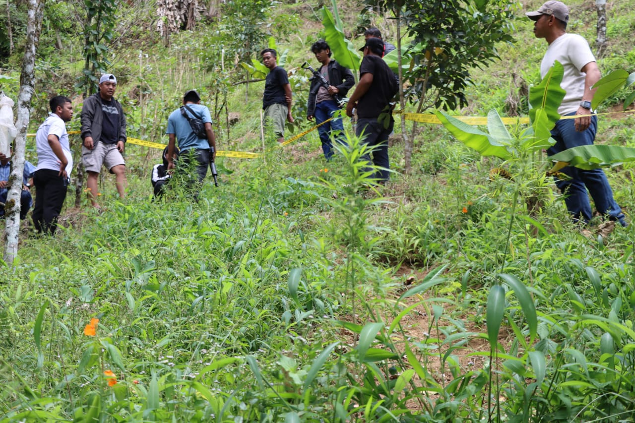 Pencarian berlanjut ke kebun milik pelaku, sekitar 4 kilometer dari rumahnya. Di lokasi terpencil ini, polisi kembali menemukan 12 pohon ganja lainnya yang tumbuh subur.