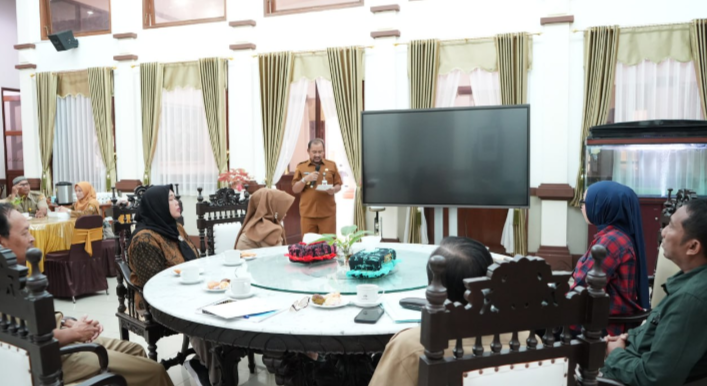 BERITABERSATU.COM, Pemalang—Bupati Pemalang Anom Widiyantoro didampingi sejumlah Organisasi Perangkat Daerah (OPD) terkait menerima kunjungan Tim Pemantau Adipura Kabupaten Koordinator Wilayah Pusat Pengendalian Lingkungan Hidup Jawa Tengah di Ruang Gadri Rumah Dinas Bupati, Selasa (16/9/2025).