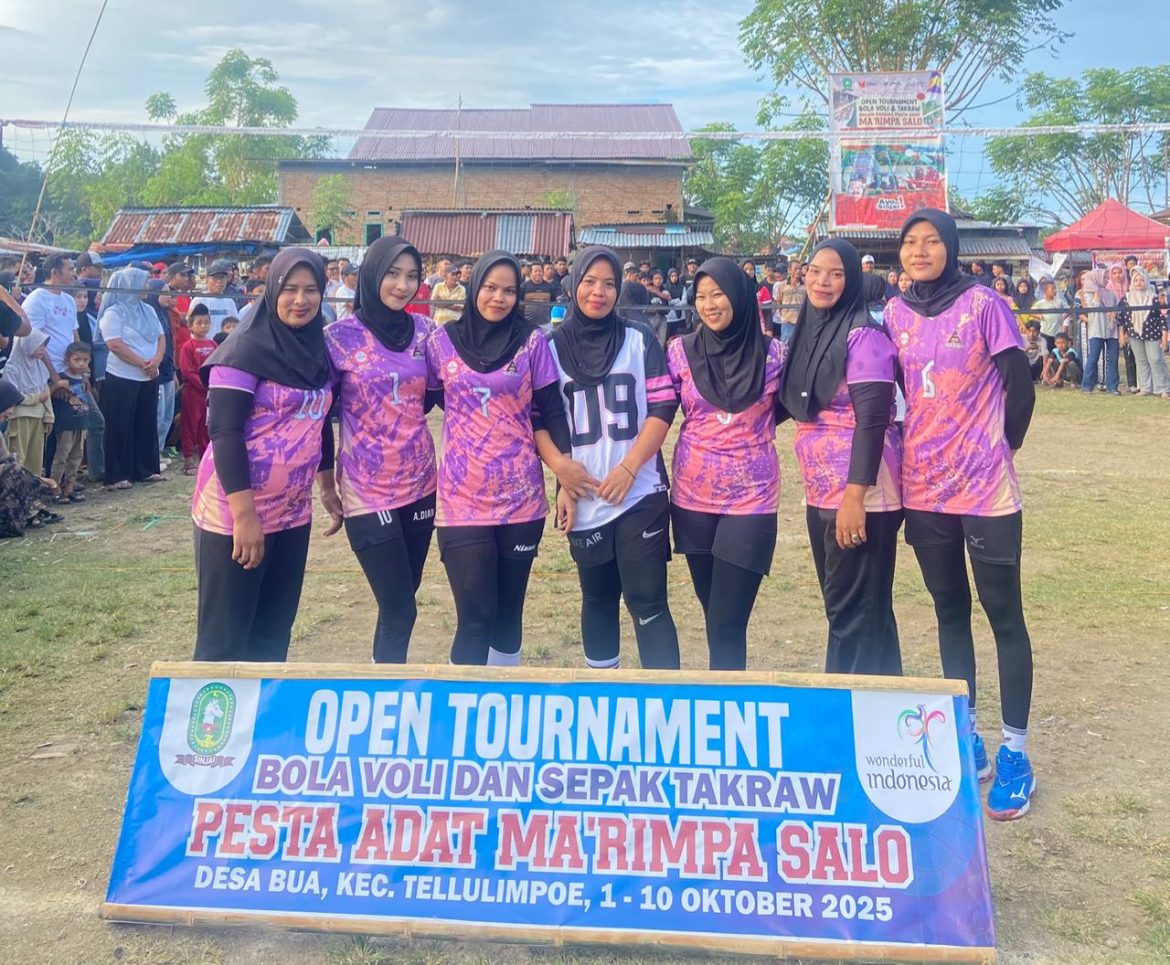 BERITABERSATU.COM, SINJAI –Prestasi membanggakan kembali ditorehkan oleh tim bola volly putri desa Bua dalam ajang Turnamen Bola Volly Open dalam rangka memeriahkan pesta adat Ma’rimpa Salo, yang digelar dilapangan bola volly desa Bua Kecamatan Tellulimpoe, Jum’at (10/10/2025) Sore tadi.