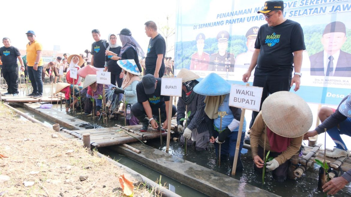 BERITABERSATU.COM,Pemalang – Ratusan ribu pohon mangrove di tanam di pesisir pantai utara Kabupaten Pemalang, Jawa Tengah dalam program Mageri Segoro.