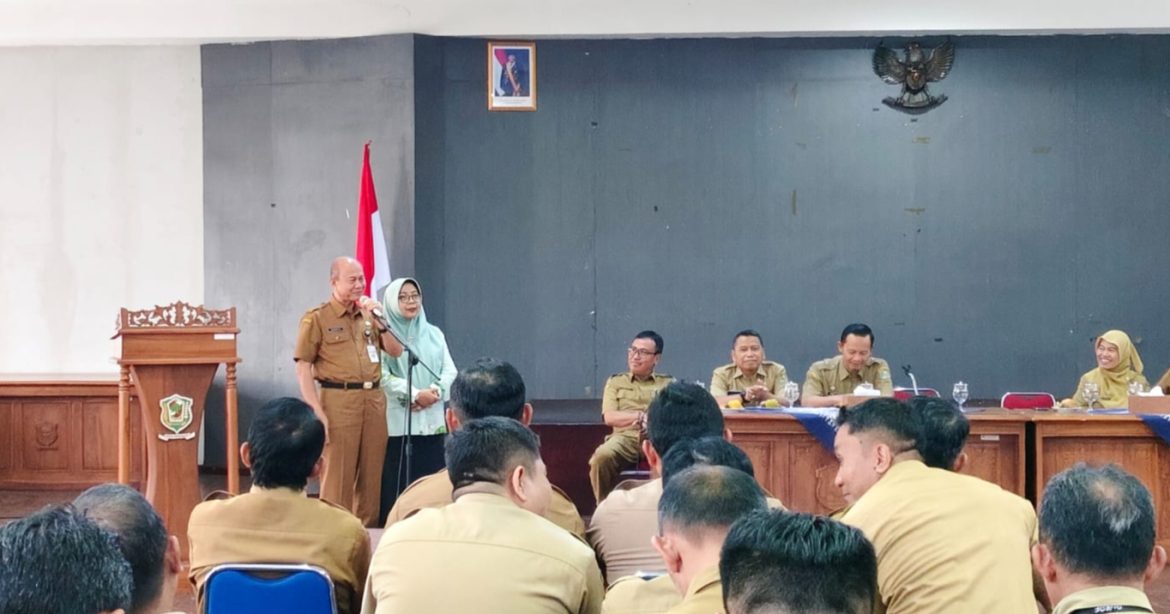 BANJARNEGARA, BERITABERSATU – Menjelang purna tugas sebagai Sekretaris Daerah (Sekda) Banjarnegara, Drs. Indarto, MS.i beserta Istri Sri Rejeki Indarto, berpamitan dengan para pejabat dan Aparatur Sipil Negara (ASN) di lingkungan Sekretariat Daerah, Senin (17/2/2025) di Aula lantai 3 Setda.