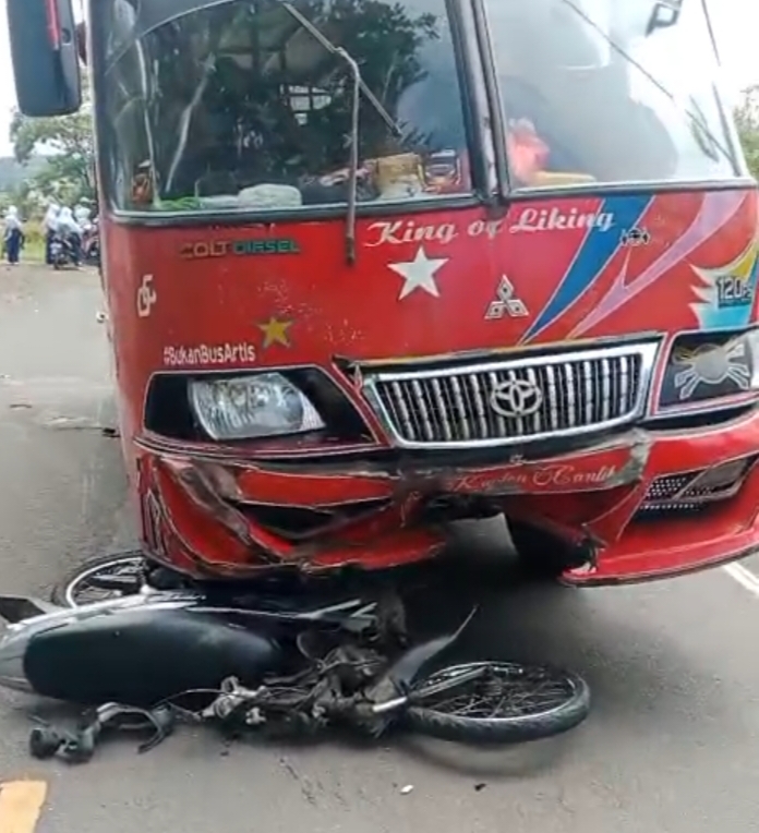 Dua korban, AR (14) yang mengendarai motor dan penumpangnya, AF (14), keduanya pelajar asal Desa Gona, meninggal dunia di tempat kejadian setelah sepeda motor Yamaha Vega tanpa plat nomor yang mereka kendarai bertabrakan dan nahasnya terlindas mobil Bus Mitsubishi Colt.