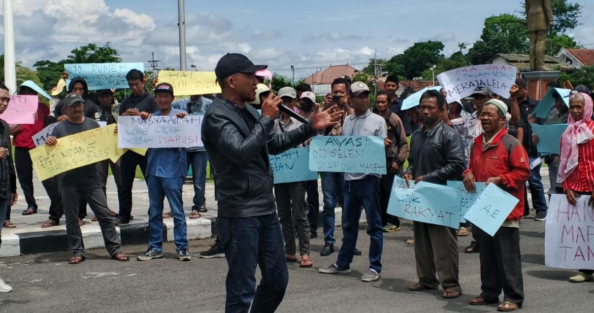 Di bawah terik matahari, mereka mengangkat poster bertuliskan “Tanah untuk Rakyat, Bukan untuk Mafia!” sembari berorasi bergantian.