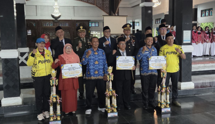 Penyerahan diserahkan langsung oleh Wakil Bupati Pemalang, Nurkholes kepada masing-masing juara umum tingkat SD sederajat hingga tingkat SMA sederajat dalam upacara peringatan Hari Sumpah Pemuda ke 97 yang digelar di Halaman Pendopo, Selasa (28/10/2025).