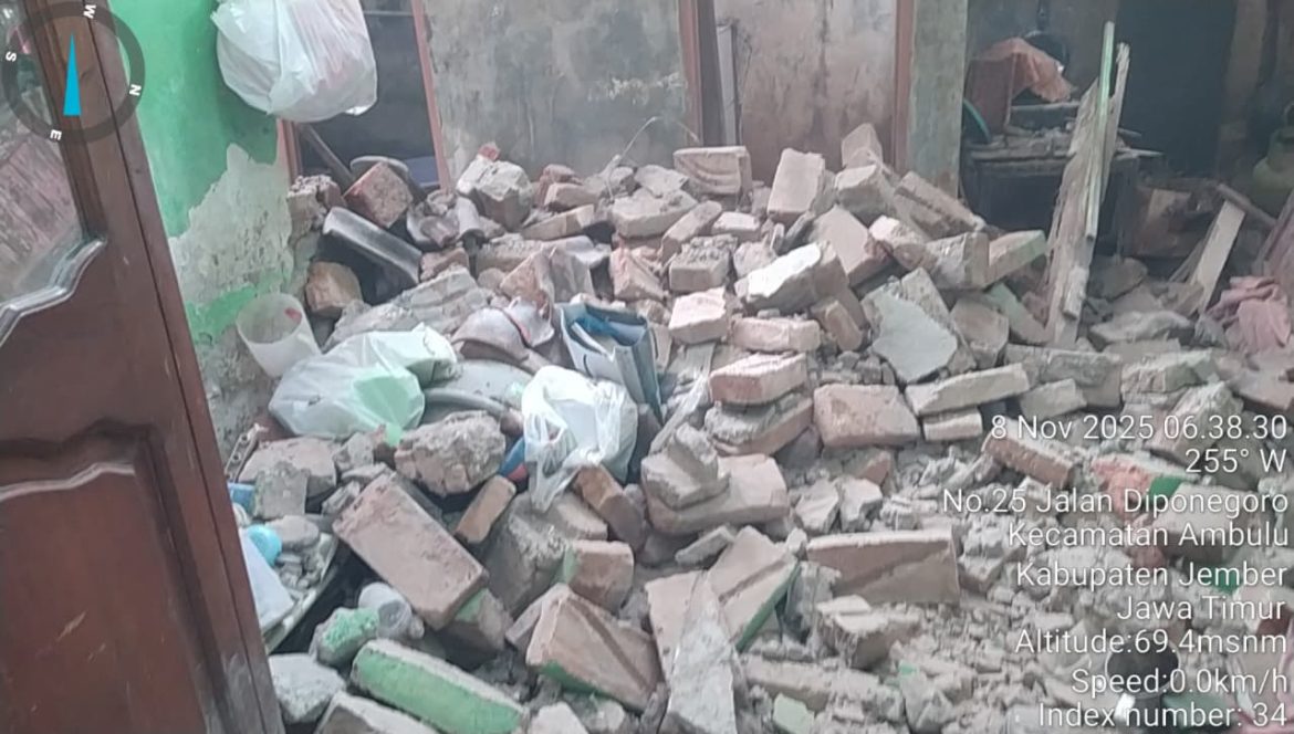 BERITABERSATU.COM, JEMBER – Musibah tak terduga menimpa keluarga wartawan Gabungan Wartawan Indonesia (GWI) Jember, Agus Sugiyanto. Tiba-tiba, separuh atap dapur kediamannya di Dusun Krajan, Ambulu, ambruk tanpa didahului hujan atau angin kencang pada Sabtu pagi (8/11/2025). Beruntung, istri Agus, Winarsih, yang berada di dapur, selamat dari timpaan reruntuhan.