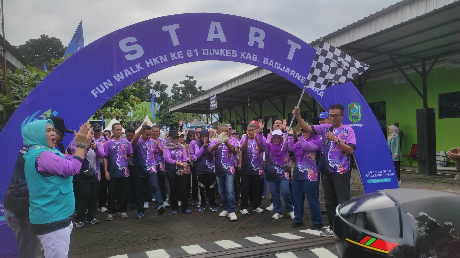 Kegiatan Fun Walk atau jalan sehat itu dilepas oleh Staf Ahli Bupati Bidang Pembangunan, Ekonomi, dan Keuangan, Tulus Sugiharto, di halaman Dinkes Banjarnegara.