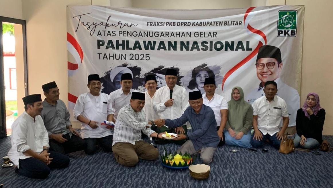Sekretaris Fraksi PKB DPRD Kabupaten Blitar, Nur Fathoni, menyampaikan rasa syukur sekaligus apresiasinya atas keputusan pemerintah yang menetapkan K.H. Abdurrahman Wahid, Marsinah, dan Syaikhona Muhammad Kholil sebagai pahlawan nasional pada tahun ini.
