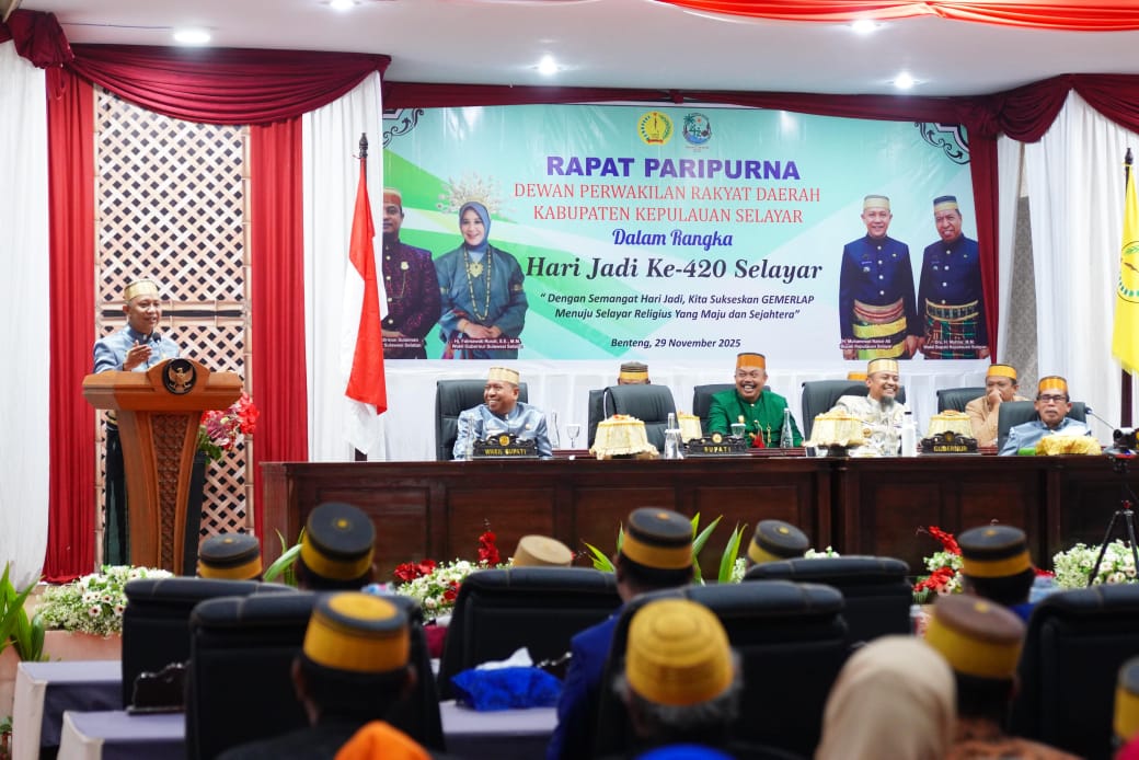 BERITABERSATU.COM, KEPULAUAN SELAYAR — Pemerintah Kabupaten Kepulauan Selayar diselimuti semangat optimisme setelah Gubernur Sulawesi Selatan, H. Andi Sudirman Sulaiman, menyerahkan bantuan keuangan senilai Rp15 miliar sebagai “kado” istimewa dalam Sidang Paripurna Istimewa Hari Jadi Selayar ke-420, Sabtu (29/11/2025).