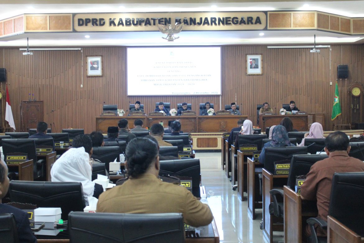 BANJARNEGARA, BERITABERSATU – Dewan Perwakilan Rakyat Daerah (DPRD) Kabupaten Banjarnegara, menggelar Rapat Paripurna terkait usul pemberhentian dan usul pengangkatan pimpinan DPRD masa jabatan 2024-2029, Selasa (2/12/2025).