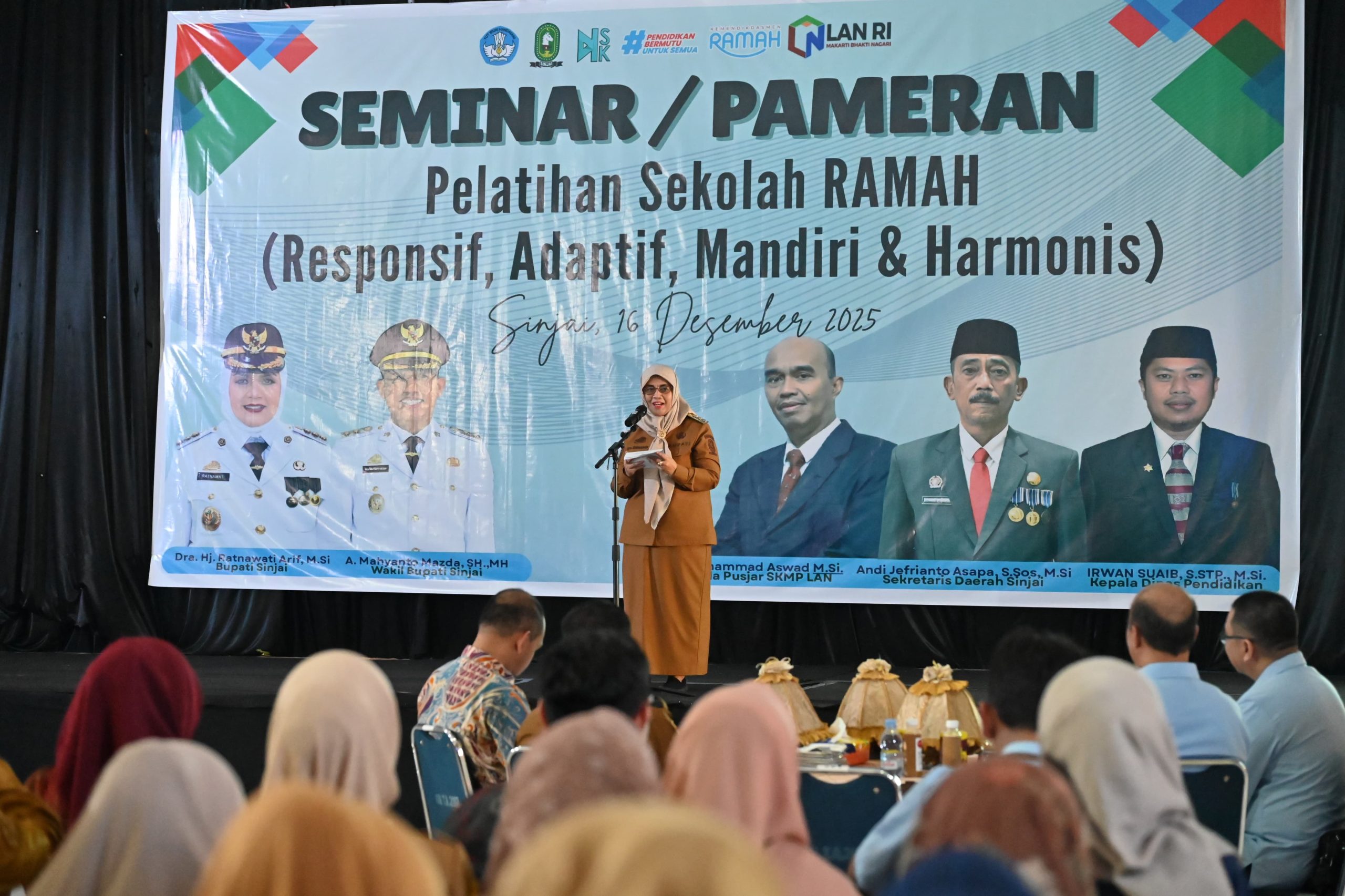 Bupati Sinjai, Hj. Ratnawati Arif, dalam sambutannya menyampaikan apresiasi tinggi kepada Pusjar LAN Makassar atas dukungan mereka. Ia menegaskan bahwa nilai RAMAH lahir dari keinginan kuat seorang pemimpin untuk melihat Sinjai maju, berkarakter, dan berkomitmen terhadap kemajuan pendidikan.