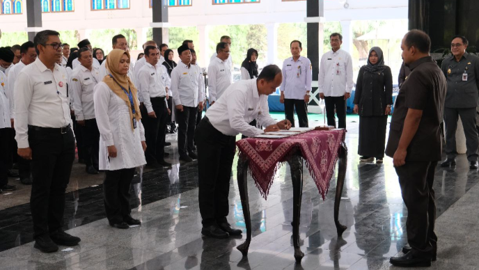 PEMALANG,BB – Bupati Pemalang Anom Widiyantoro melakukan rotasi besar-besaran terhadap 314 pejabat jabatan pimpinan tinggi pratama dan pejabat administrasi di Lingkungan Pemkab Pemalang di Pendopo Kabupaten setempat, Jum’at (2/1/2026).