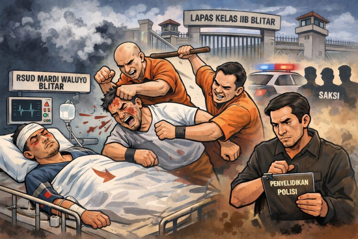 Beritabersatu.com, Blitar – Seorang narapidana kasus narkotika berinisial H yang menjadi korban kekerasan di Lapas Kelas IIB Blitar dinyatakan meninggal dunia setelah menjalani perawatan intensif di RSUD Mardi Waluyo Blitar. Korban mengembuskan napas terakhir pada Sabtu (10/1/2026) pagi akibat kondisi medis yang terus memburuk.