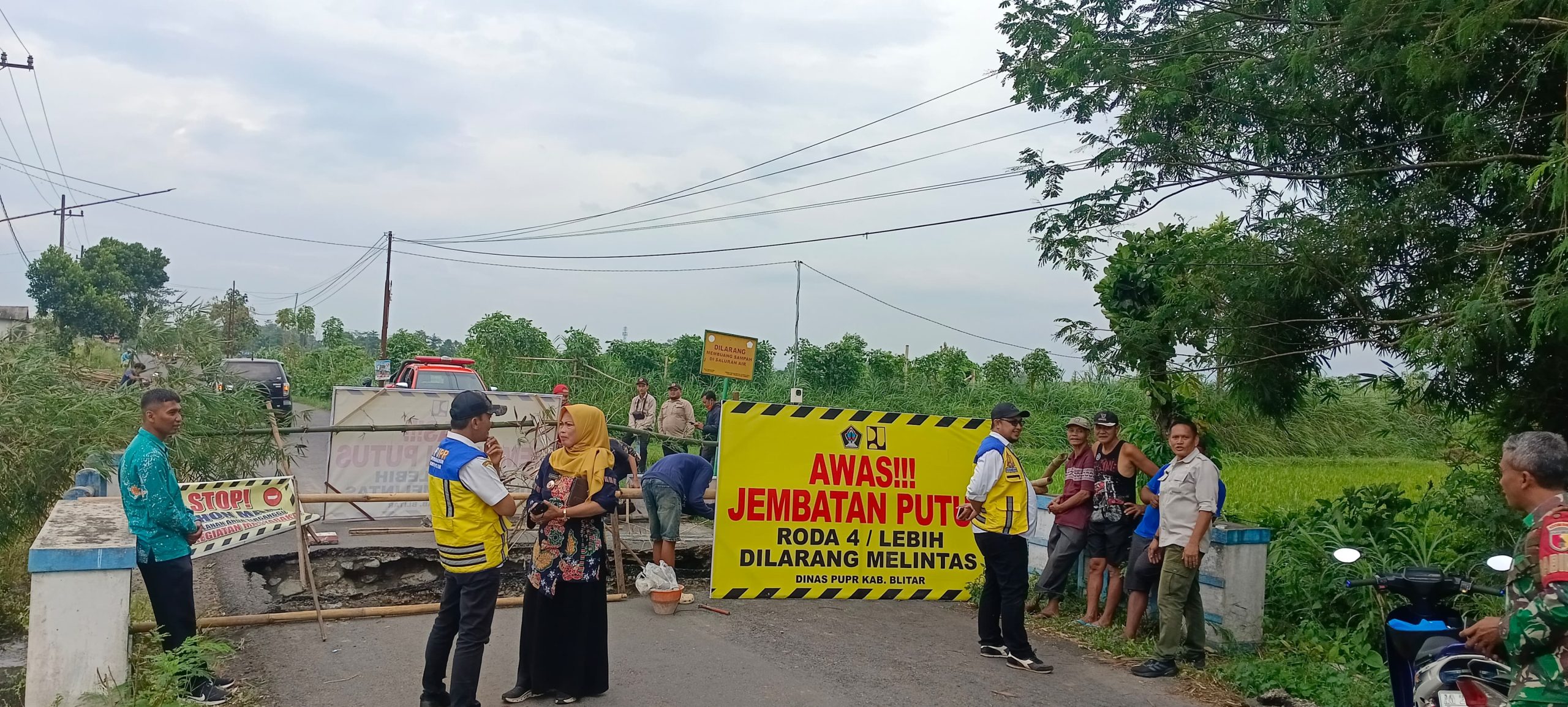 Jajaran Dinas PUPR Kabupaten Blitar langsung turun ke lokasi untuk melakukan pengecekan kondisi jembatan serta menyiapkan langkah penanganan darurat guna mencegah dampak yang lebih luas terhadap aktivitas masyarakat.