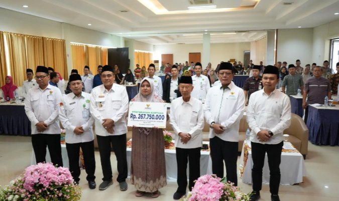 Wakil Bupati Pemalang Nurkholes bersama Kepala Baznas Provinsi Jawa Tengah, Ahmad Darodji, secara simbolis menyerahkan Bantuan Modal Usaha kepada 85 mustahik tersebut di Hotel R-Gina Pemalang, Selasa (3/2/2026).
