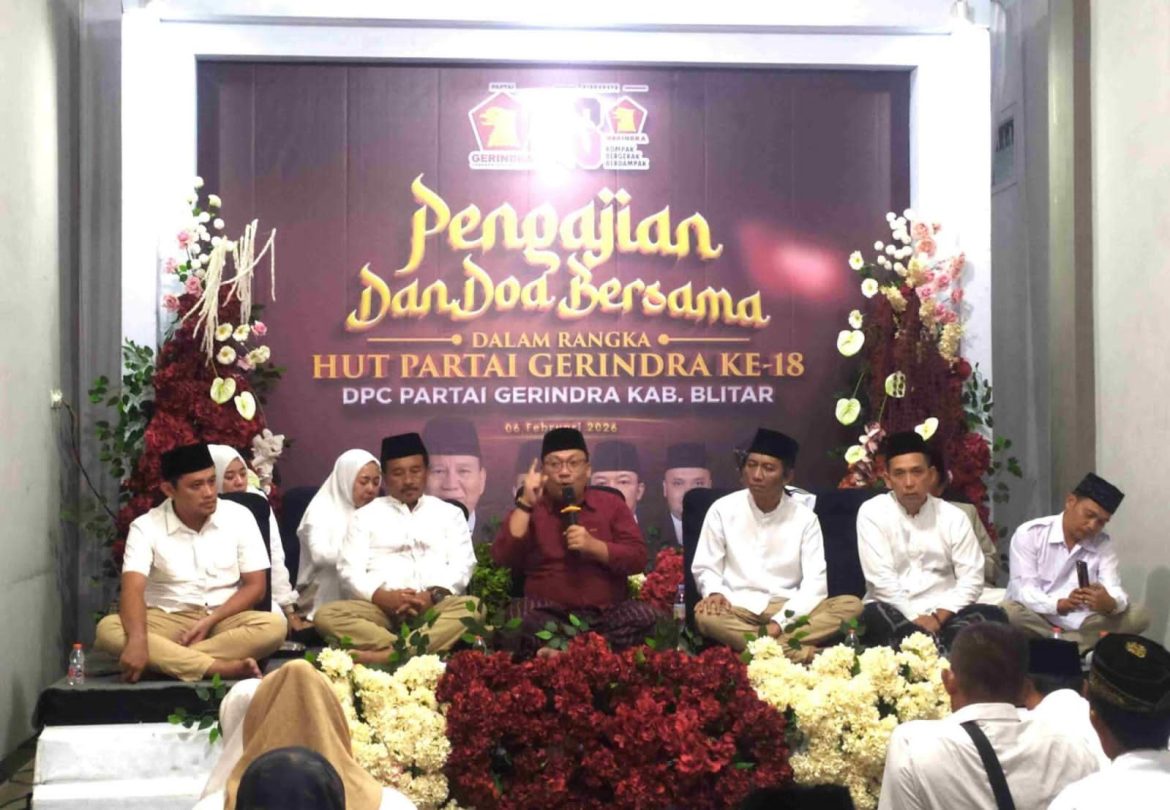 Sementara itu, Sekretaris DPC Partai Gerindra Kabupaten Blitar, Sugianto, S.Sos, menuturkan bahwa kesederhanaan dan nuansa religius menjadi penekanan utama dalam peringatan HUT tahun ini, sesuai arahan pimpinan partai.