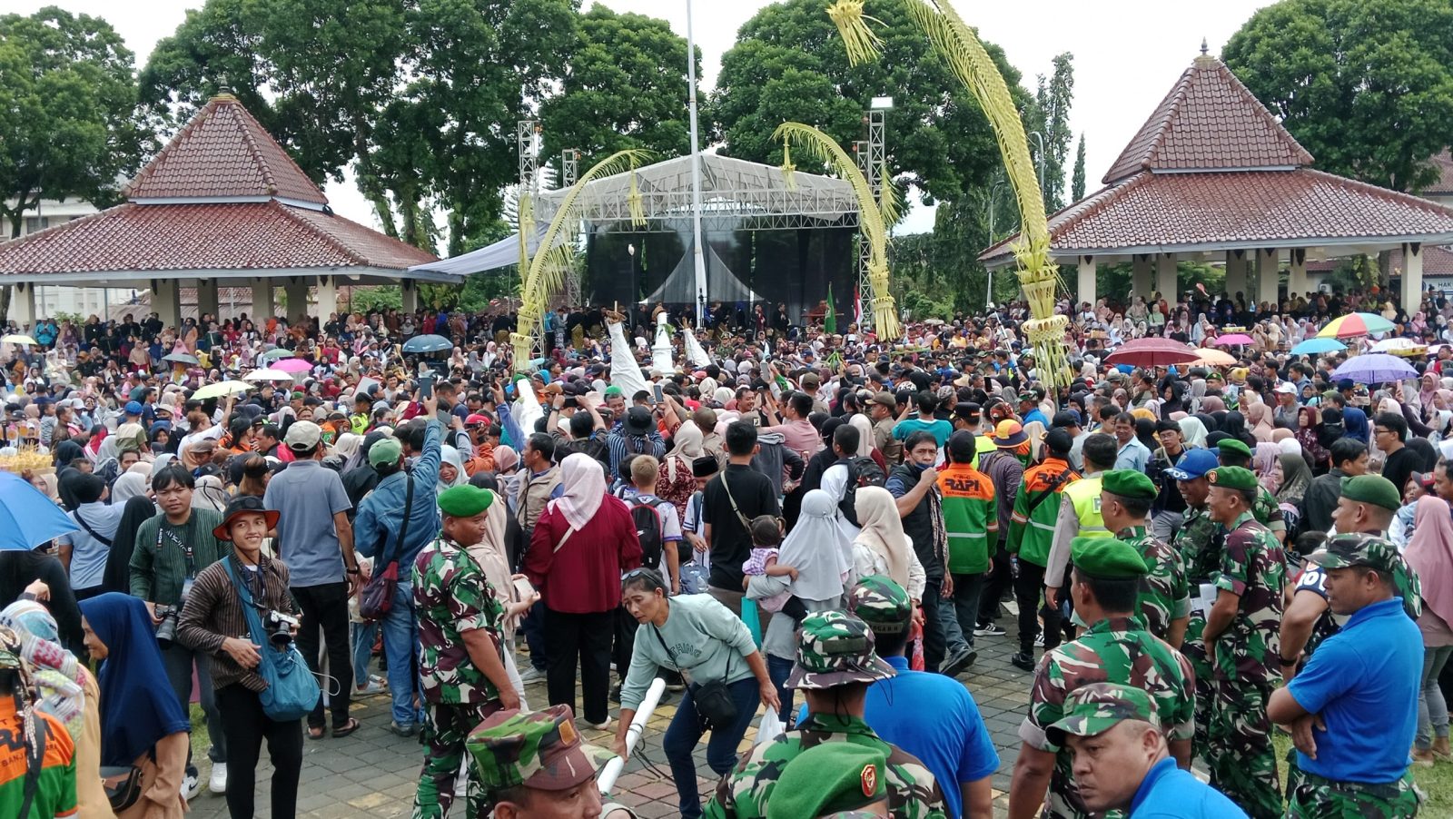 BANJARNEGARA, BERITABERSATU – Ribuan warga memadati Alun-alun Banjarnegara untuk mengikuti tradisi perebutan gunungan hasil panen dalam rangka puncak peringatan Hari Jadi ke-455 Kabupaten Banjarnegara, Kamis (2/4/2026).