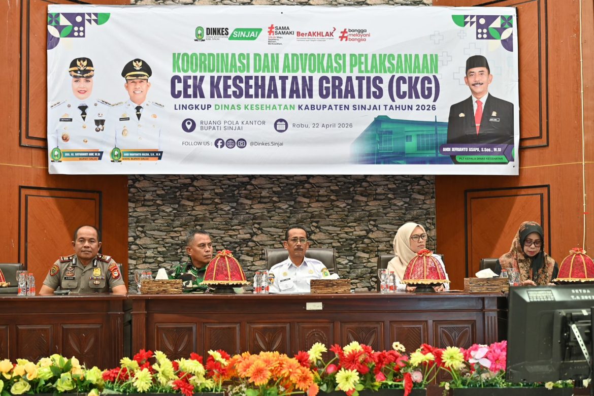 Langkah konkret ini ditegaskan dalam Rapat Koordinasi (Rakor) dan Advokasi Pelaksanaan Cek Kesehatan Gratis (CKG) Tahun 2026 yang digelar di Ruang Pola Kantor Bupati Sinjai, Rabu (22/4/2026).